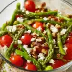 A refreshing salad featuring tender asparagus, juicy tomatoes, and creamy feta, dressed with homemade balsamic vinaigrette.