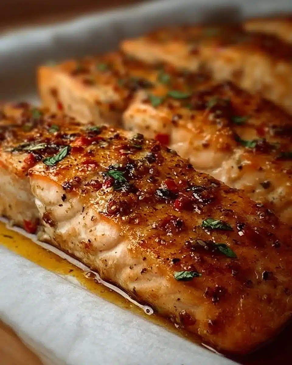 A quick and healthy baked salmon dish, rich in omega-3s and flavored with lemon, garlic, and fresh herbs.