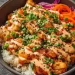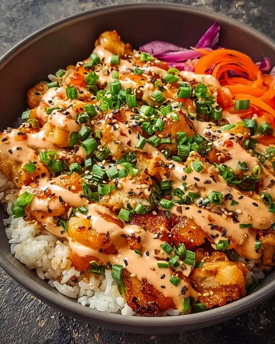 A flavorful and easy-to-make Bang Bang Chicken Bowl featuring tender chicken, colorful veggies, and a creamy sauce, perfect for quick dinners and meal prep.