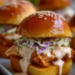 Delicious Bang Bang Chicken Sliders, perfect for parties and casual dinners, featuring crispy chicken, a creamy and spicy sauce, and fresh veggies.