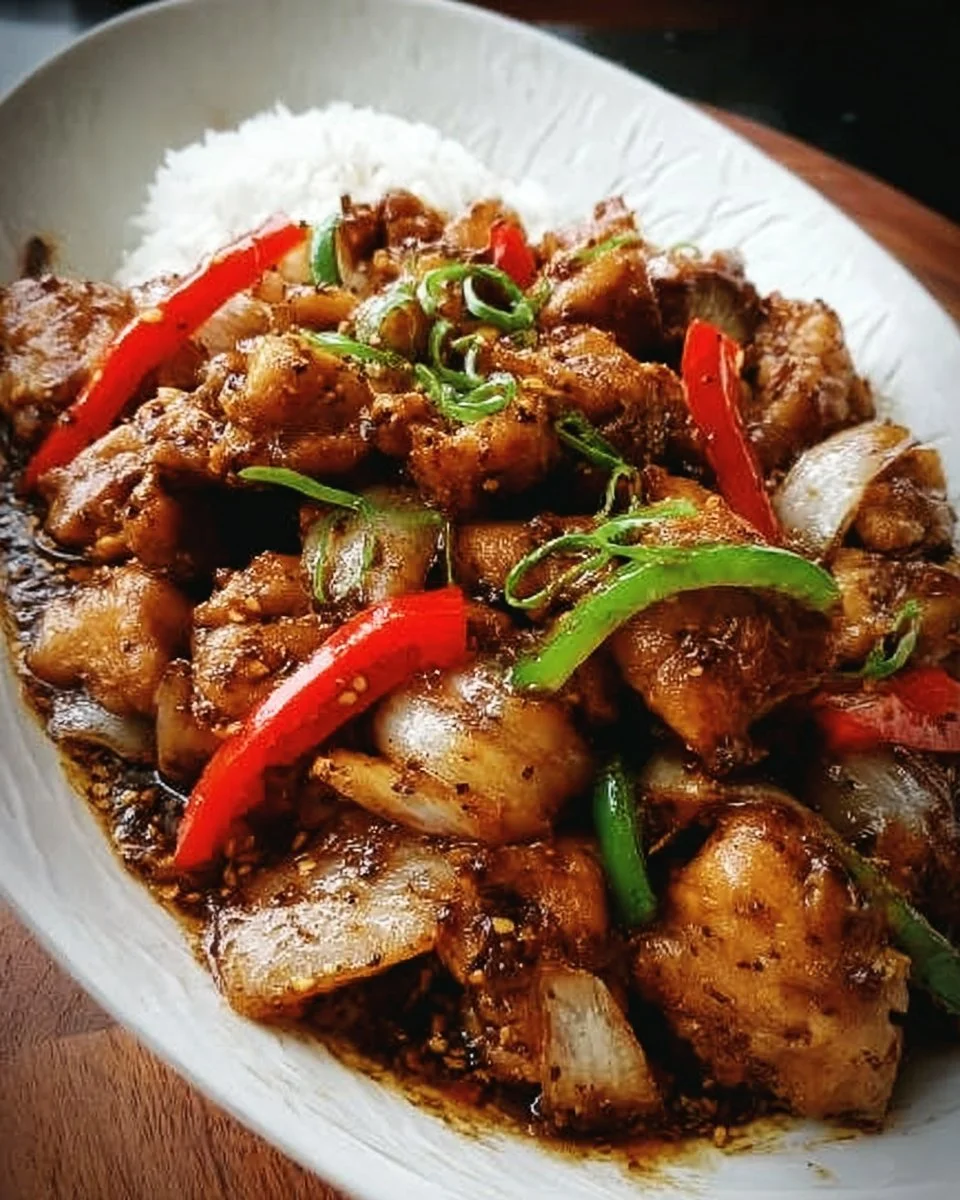 A quick and delicious dish featuring juicy chicken coated in a flavorful black pepper sauce, perfect for weeknight meals.