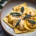 Serve Butternut Squash Ravioli warm, topped with grated parmesan and fresh sage leaves for extra flavor. You can also drizzle a little extra olive oil or melted butter over the top for a richer taste. Pair it with a light salad or some garlic bread for a complete meal.