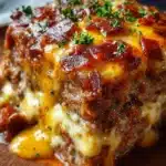 A comforting dish that combines classic meatloaf flavors with a cheesy twist, perfect for family dinners.