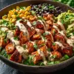 The Chipotle Chicken Bowl with Black Beans, Corn, and Creamy Sauce is not just a meal; it’s an experience bursting with flavor, color, and nutrition. It’s perfect for any occasion, whether it’s a simple dinner at home or hosting a gathering with friends. Easy to customize, easy to prepare, and sure to please everyone at the table, this bowl is bound to become a favorite in your household. So why not gather your ingredients and start your culinary journey into the world of delicious bowls today? Enjoy!