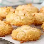 Delightful, chewy coconut cookies with a crisp edge and toasted finish, perfect for snacking or gifting.