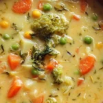 A warm and filling one-pot creamy vegetable soup packed with a variety of nutritious vegetables, perfect for chilly days.