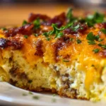 The standard baking time for Crack Breakfast Casserole is 50–60 minutes at 350°F (175°C). After covering it with foil, you’ll remove the foil for an additional 8–10 minutes to achieve that golden, bubbly cheese top.