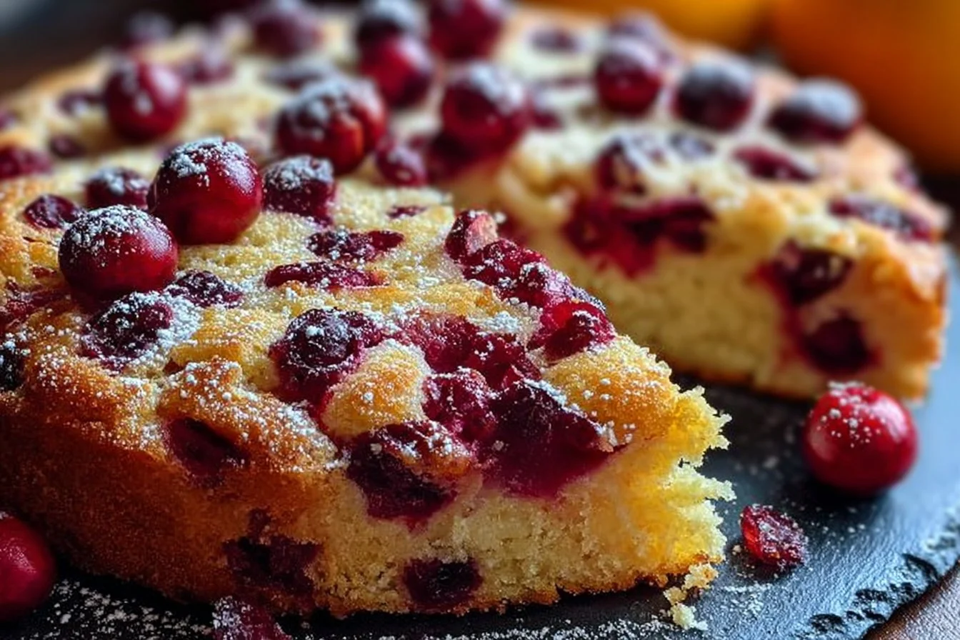 A delightful and refreshing breakfast cake bursting with the tartness of fresh cranberries and the citrusy zing of orange.