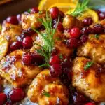 - Scatter fresh cranberries and orange zest over the chicken.