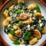 Creamy Gnocchi with Spinach and Feta is a wonderful dish that is both comforting and delicious. It combines soft, pillowy gnocchi with fresh spinach and salty feta, all wrapped in a rich cream sauce. This recipe is quick to make, making it perfect for busy weeknights or a special dinner. Plus, it’s a great way to enjoy your veggies!