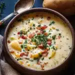 This creamy potato soup is the ultimate comfort food. Perfect for chilly evenings or anytime you want to feel cozy, it’s rich, satisfying, and simple to whip up. Not only is it delicious, but it also uses pantry staples and can be customized with your favorite toppings. Plus, it’s a great way to use up any leftover potatoes!