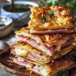 A delightful twist on classic comfort food, these crispy stacks combine flaky puff pastry with savory ham and melty cheese, perfect for any occasion.