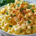 A creamy, nostalgic side dish combining the tang of deviled eggs with tender elbow macaroni for a comforting and crowd-pleasing option.