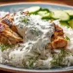 A fantastic one-pan meal featuring tender chicken, creamy tzatziki, and fluffy rice, perfect for busy weeknights.