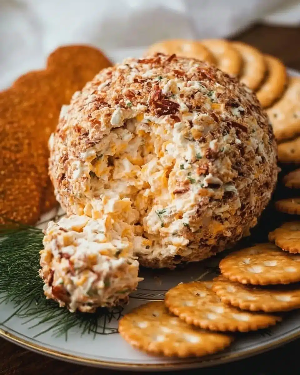 The cheese ball can be served with an assortment of crackers, fresh vegetables, and even fruits like grapes or apple slices. Providing a mix of options allows guests to enjoy it in their preferred way and keeps the presentation appealing.