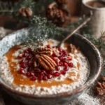 A warm and healthy breakfast, perfect for festive mornings, customizable with fruits and nuts.
