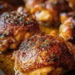 - Honey Glaze: Brush the chicken thighs with honey or maple syrup during the last 5 minutes of baking for a sweet caramelized top.