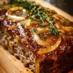 A delicious twist on a classic dish, combining savory caramelized onions with traditional meatloaf for a rich and comforting taste.