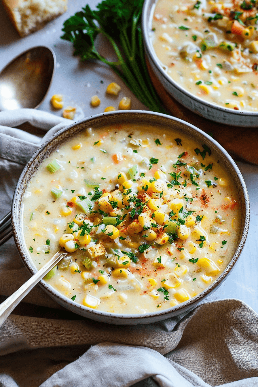 Fresh corn chowder is a silky, seasonal soup made with summer corn, herbs, and dairy. This variation blends roasted vegetables, zucchini, and half and half for a velvety texture while avoiding pork, bacon, and alcohol. Ready in under an hour, it balances smoky depth with crisp sweetness.