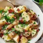 A delightful warm salad featuring tender potatoes, crispy bacon, and a tangy dressing, perfect as a side for any meal.