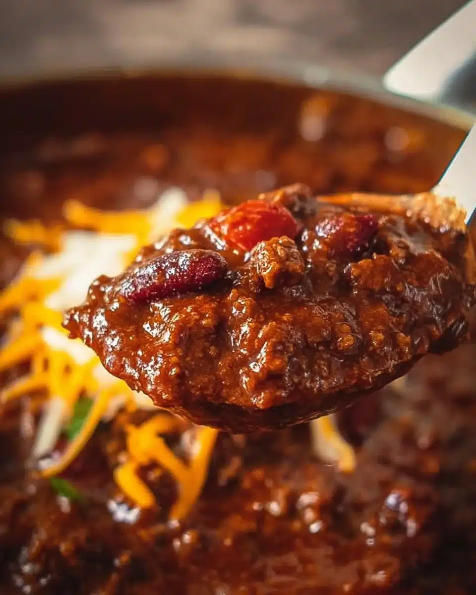 To store any leftovers, put the chili in an airtight container in the fridge. It will last for about 3 to 4 days. If you want to keep it longer, you can freeze it for up to 3 months. Be sure to let it cool completely before freezing and thaw it in the fridge overnight before reheating.