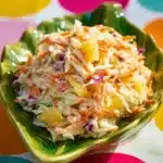 Finally, Hawaiian Pineapple Coleslaw plays well with many cuisines. It’s a natural pairing for grilled chicken, fish tacos, pulled pork (try smoked turkey or mushrooms if you want a pork-free meal), and even as a topping for sandwiches and bowls. The bright flavors help cut richness and add a tropical note to classic dishes.