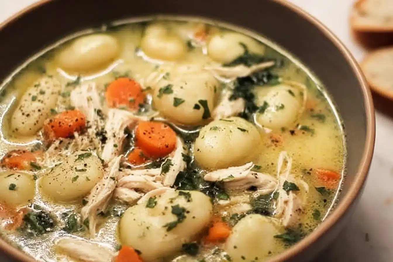 A hearty and nourishing soup combining rotisserie chicken and gnocchi, perfect for chilly days.