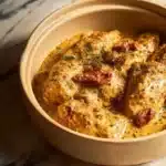 A delightful crockpot dish featuring tender chicken in a creamy sauce with sun-dried tomatoes, perfect for family dinners or meal prep.