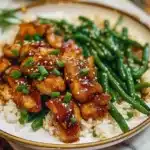 A delightful dish that combines sweet and savory flavors with tender chicken, crisp green beans, and a luscious honey garlic sauce, perfect for a weeknight dinner.