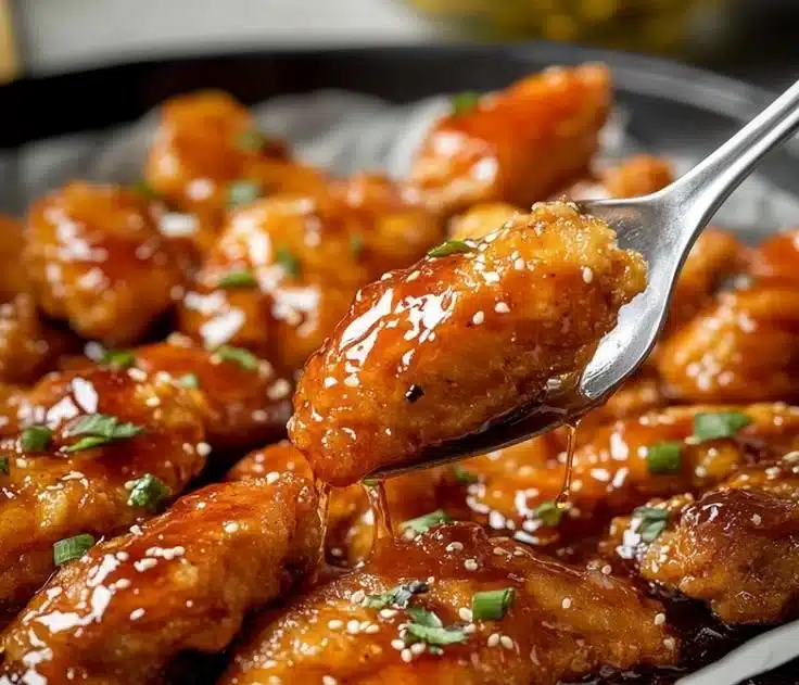 - Drizzle the hot honey sauce over the cooked chicken and toss gently to coat.