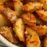 These potatoes start by getting a quick boil, which softens the interiors, and then they’re tossed with seasonings and lots of Parmesan before finishing in a hot oven until the outsides are crisp and slightly caramelized. The result is addictive: salty, nutty, and satisfying without much fuss. Whether you’re cooking for a weeknight dinner or entertaining friends, this recipe is approachable and reliable.