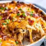 The flavors are approachable: tangy barbecue, creamy cheese, and the smoky pop of bacon. Because it’s assembled in one dish and baked, cleanup is minimal. It’s also flexible — you can swap a few ingredients to match what’s in your pantry or to make it dairy-free, pork-free, or extra spicy.