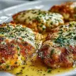 Absolutely. Boneless, skinless chicken thighs can be used for a juicier, slightly more forgiving result because they contain more fat. Because thighs are often smaller and thicker in different places, check internal temperature and adjust baking time: thighs may cook a little faster or require a similar time but will remain juicier. Thighs tend to pair beautifully with Parmesan and garlic, and they’ll develop the same golden crust.