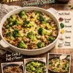 A delicious, easy-to-make skillet meal that is perfect for a keto diet, featuring ground beef, broccoli, and creamy cheese.