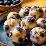 Delicious and nutritious protein bites made with cottage cheese, blueberries, and lemon, perfect for a healthy snack.