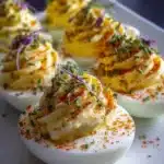 An elevated take on classic deviled eggs with creamy filling, crispy bacon, and rich flavors that impress at gatherings.