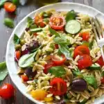 Orzo Salad is a flexible, flavorful dish that’s easy to adapt for seasons, diets, and occasion. With just a few quality ingredients and a simple dressing, you’ll have a crowd-pleasing salad that’s great for meal prep, potlucks, or a quick family dinner. Try the variations and tips above to make the recipe your own, and enjoy the bright, Mediterranean-inspired combo of tangy dressing, briny olives, and creamy feta.
