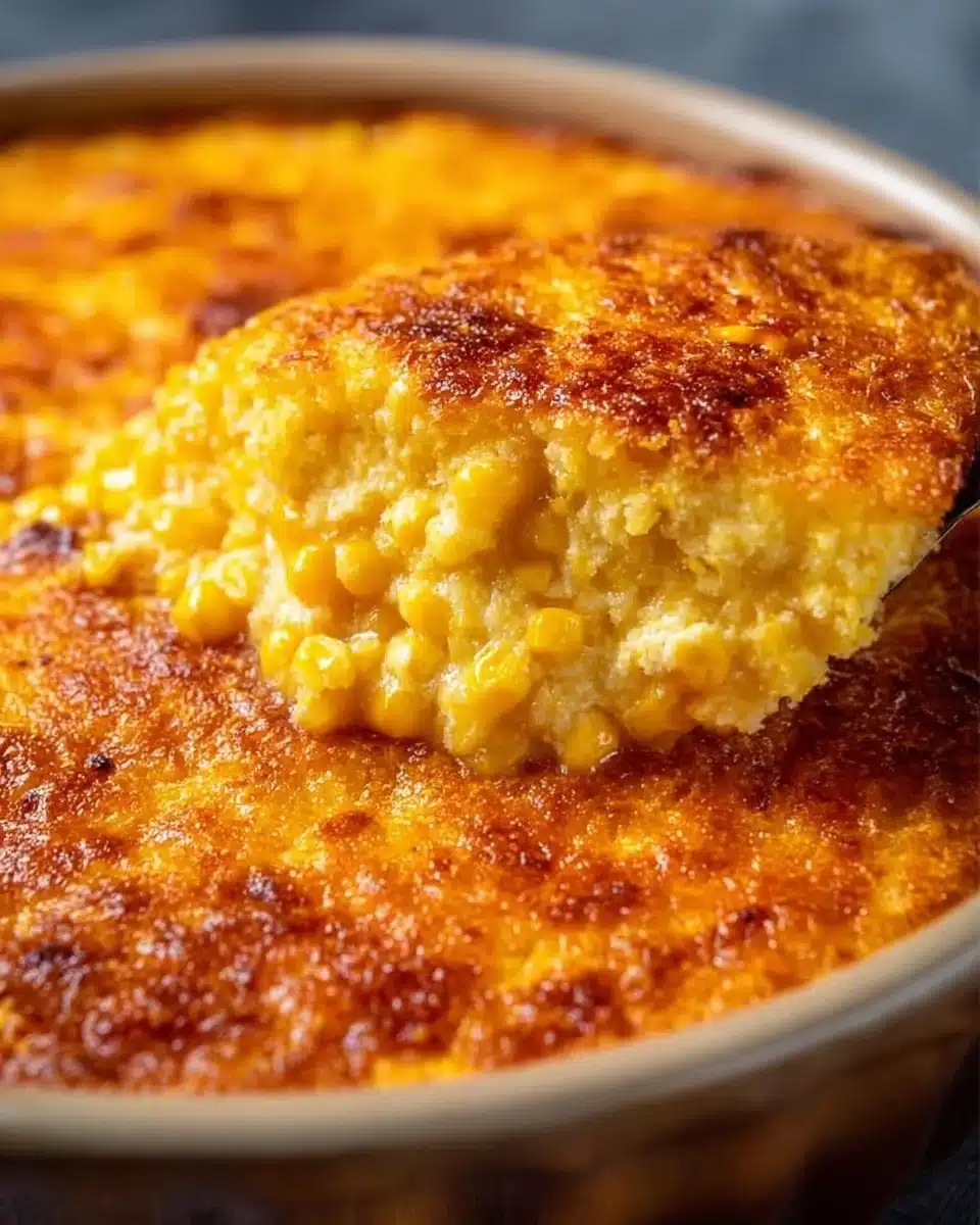 A comforting Southern dish made with sweet corn, creamy ingredients, and a buttery texture, perfect for gatherings or as a side.
