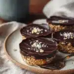 - Spoon the melted chocolate over the oat mixture in each cup, ensuring to cover it well. If you like a salty touch, sprinkle a tiny pinch of sea salt on top.