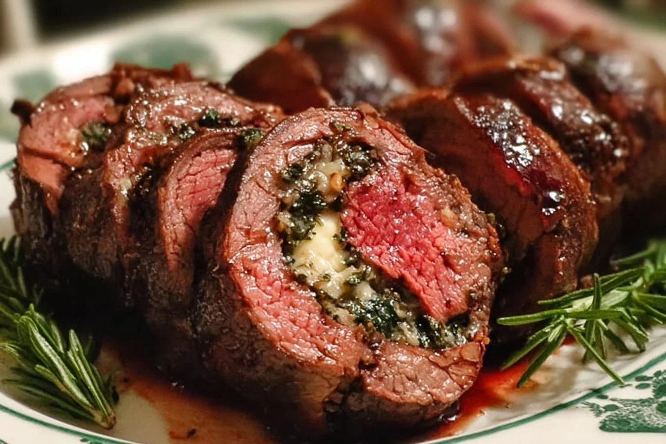 A delicious and festive stuffed beef tenderloin, perfect for holiday gatherings.