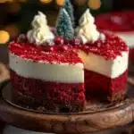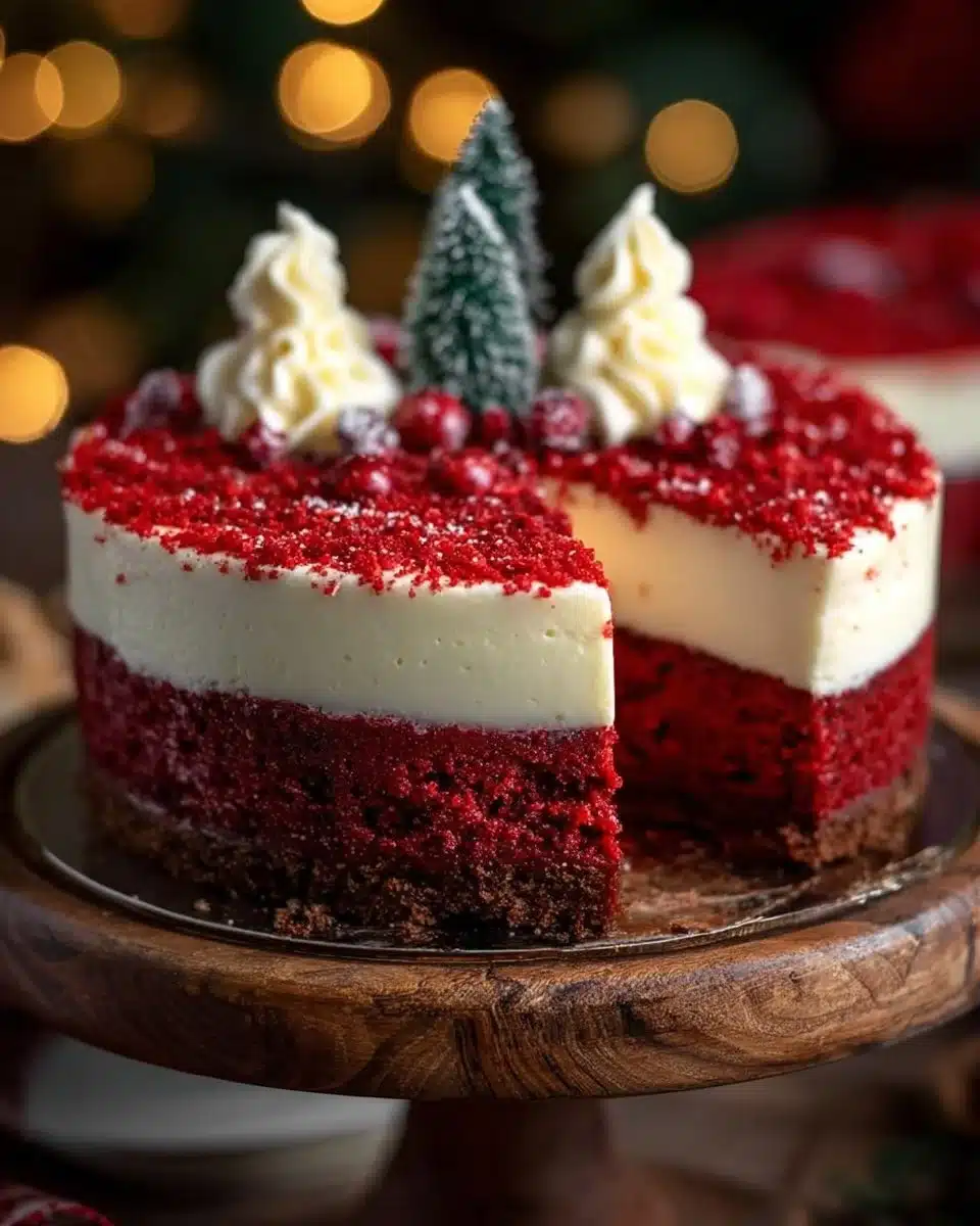 A stunning dessert that combines red velvet cake and creamy cheesecake, perfect for holiday celebrations.