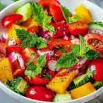 This refreshing summer salad is the ideal dish for those hot, sunny days, bursting with flavor and color. With its simple preparation and healthy ingredients, it is not only pleasing to the palate but also a visual delight. Enjoy this vibrant salad as part of your summer meals, and celebrate the wonderful flavors this season brings!