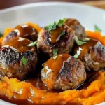 Pork meatballs with sweet potato mash and bourbon-maple sauce is a delightful dish that combines comfort and flavor in the most irresistible way. Perfect for cozy dinners or gatherings, this recipe ensures that every bite is a taste of delight.