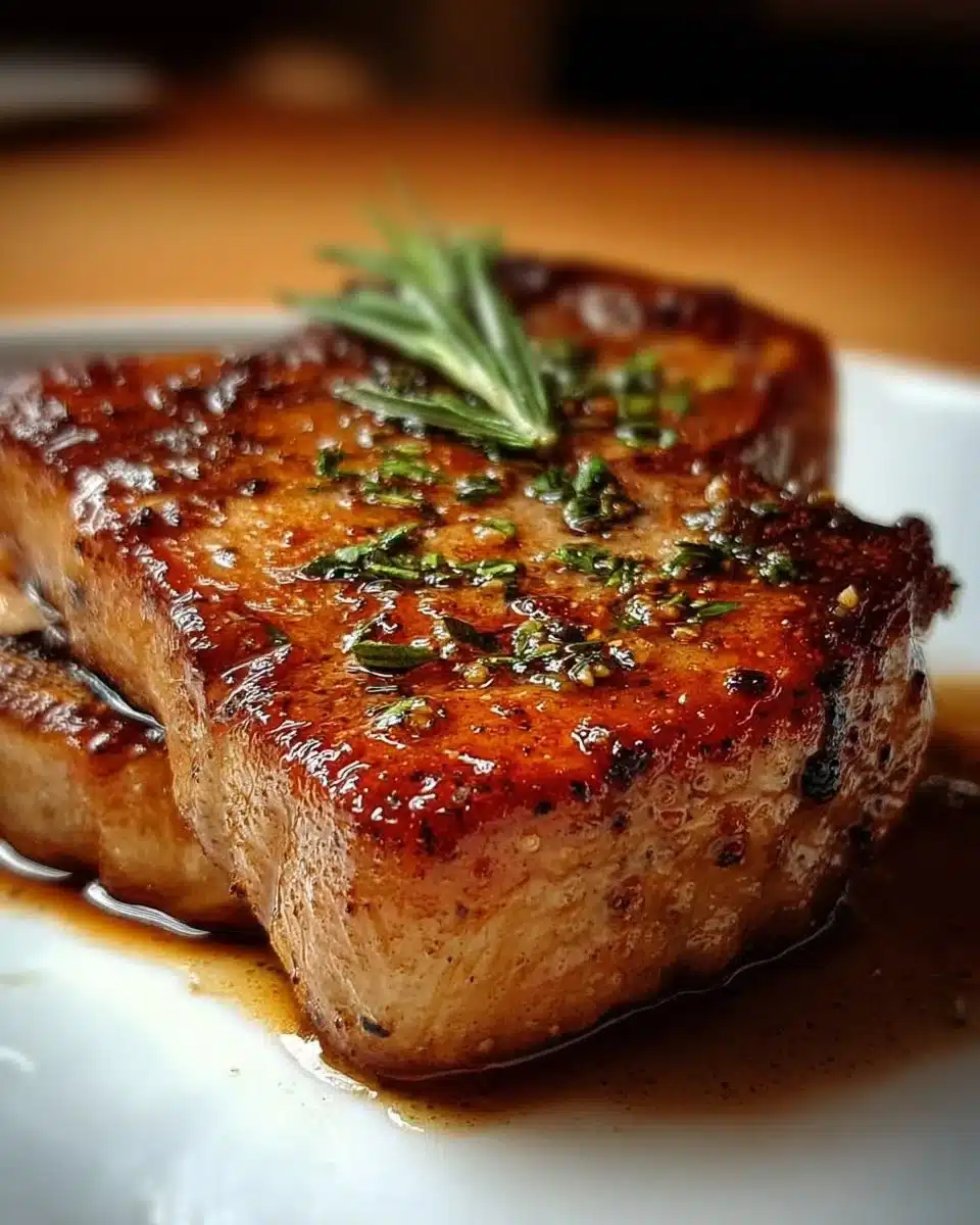 Deliciously easy seared bone-in pork chops that are perfect for any occasion, highlighting the pork’s natural flavor.