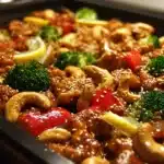 Sheet Pan Cashew Chicken is a delightful, one-pan meal that’s not only simple to prepare but also bursting with flavor. This dish combines tender chicken with crunchy cashews, vibrant bell peppers, and savory aromatics, making it an appealing option for busy weeknight dinners.