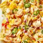 For freezing, it’s best to freeze the components separately. Raw shrimp can be frozen before cooking, or you can partially bake the nachos (without garnishes) and freeze them before fully assembling. Just remember that nachos do not freeze well after being baked, as they may become soggy.