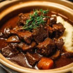 Comforting Classic: Serve the beef over slices of buttery bread with a generous side of creamy mashed potatoes.