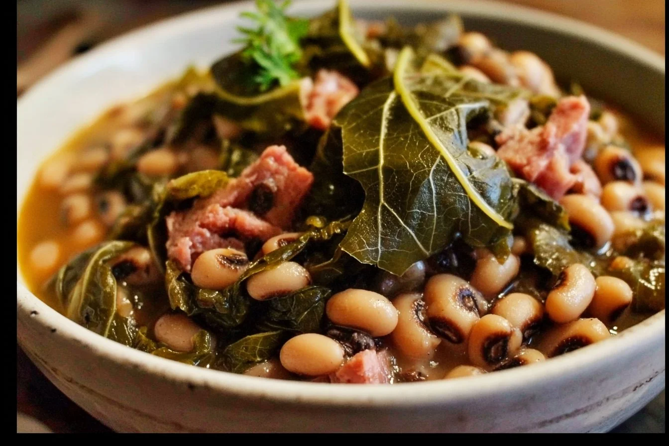 A comforting Southern tradition, this dish combines black-eyed peas and collard greens, symbolizing good luck and prosperity while providing hearty, flavorful comfort.
