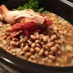 A comforting slow-cooked dish featuring black-eyed peas and smoked turkey, perfect for special occasions or cozy weeknight meals.