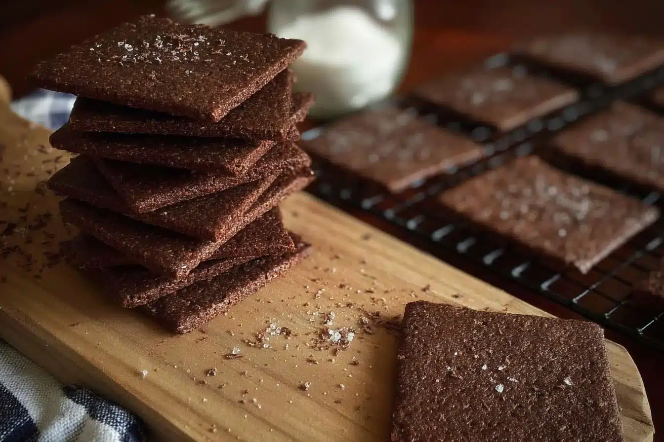 Delightful sourdough chocolate graham crackers that combine tangy sourdough flavor with rich chocolate, perfect for snacking or dessert.